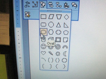 Most word processing programs like Microsoft Word have a tool box with templates for basic shapes. I found this one under Insert, AutoShapes. And look, an oval!