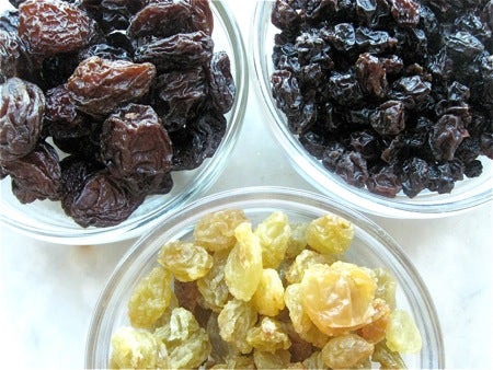Next, ready your fruit. We'll be using two kinds of raisins, plus Zante currants.