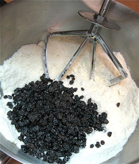 Add the currants to the dry ingredients, and stir to combine.