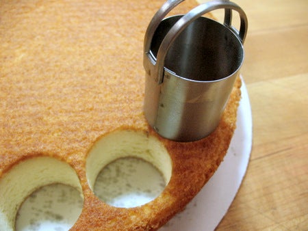 In truth, it would have been easier to trim the top off the whole layer, but I started cutting rounds before I remembered that. Learn from my bad.