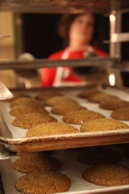 Despite the cool, gray day, with alumni and others in town for homecoming weekend, there were plenty of passers-by to snare our giant chocolate chip, ginger molasses, and oatmeal raisin cookies!