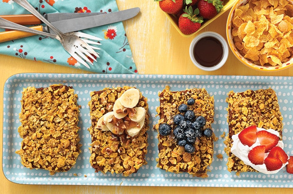 If desired, you can press the wet bread into crushed flaked cereal before adding to the fry pan. That's what our test kitchen team did – using cornflakes – for the main photo above.