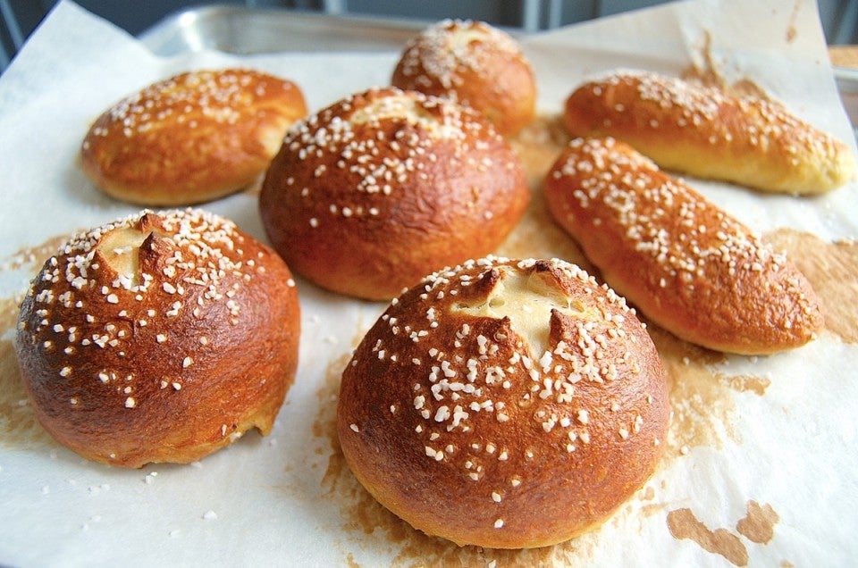 One caveat – salt-topped buns are best consumed the day they're made, especially if it's humid out. Within a day, the salt atop the buns will dissolve, drawing moisture to the buns' surface and creating a puckered appearance.