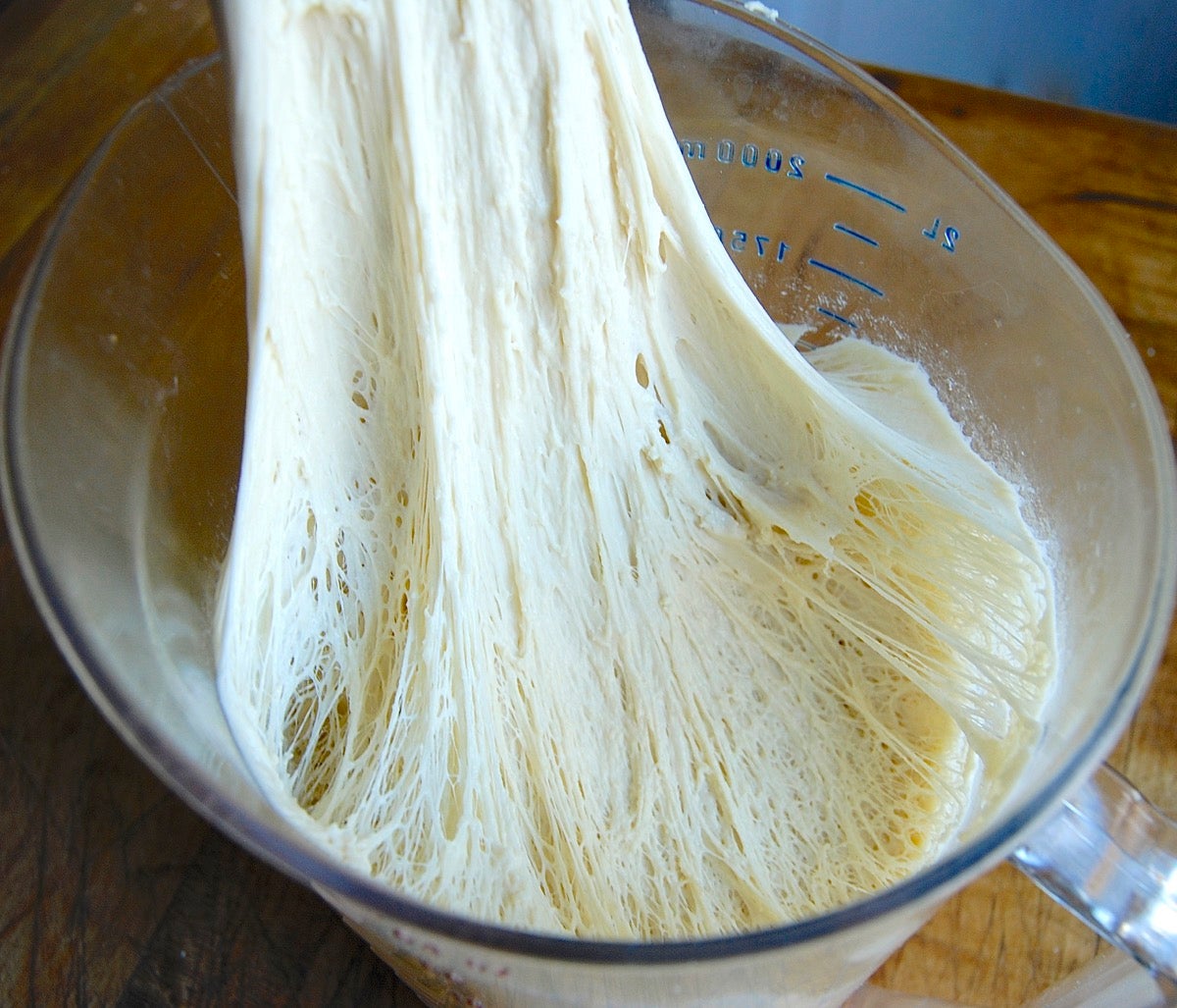 WOW, look at that gluten! The extra protein in bread flour translates to lots of stretchy gluten.