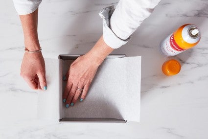 Preheat the oven to 350°F. Prepare an 8" square pan with a parchment sling or reusable silicone liner, then lightly grease the sides of the pan. Alternatively, line a 9" cake pan with a round piece of parchment or round reusable liner and lightly grease the sides.