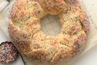 This bread is a not-too-sweet, orange-scented rendition of Italian Easter bread. We've chosen to braid it, form it into a ring, and top it with colorful sprinkles; but feel free to embellish and decorate it however you'd like.