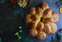 Cut slits about 1 1/2" apart, three-fourths of the way toward the center of the ring. Lay the rings on their sides to overlap, or twist alternating slices to the inside and outside of the ring, as shown in the recipe's photo. Cover with greased plastic wrap and let rise for 30 to 45 minutes, until quite puffy-looking. After 20 minutes of rising time, preheat the oven to 375°F.