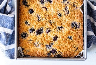 So OK, we know "peachberry" isn't really a word. But we just couldn't resist making it up, since it evokes so perfectly the wonderful harmony of peaches with any type of berry. This dense-yet-tender cake, with layers of both peaches and berries right in the batter, is topped with cinnamon-y streusel. Enjoy it warm, as a breakfast coffee cake; or à la mode, for dessert. It's a winner any time of the day.