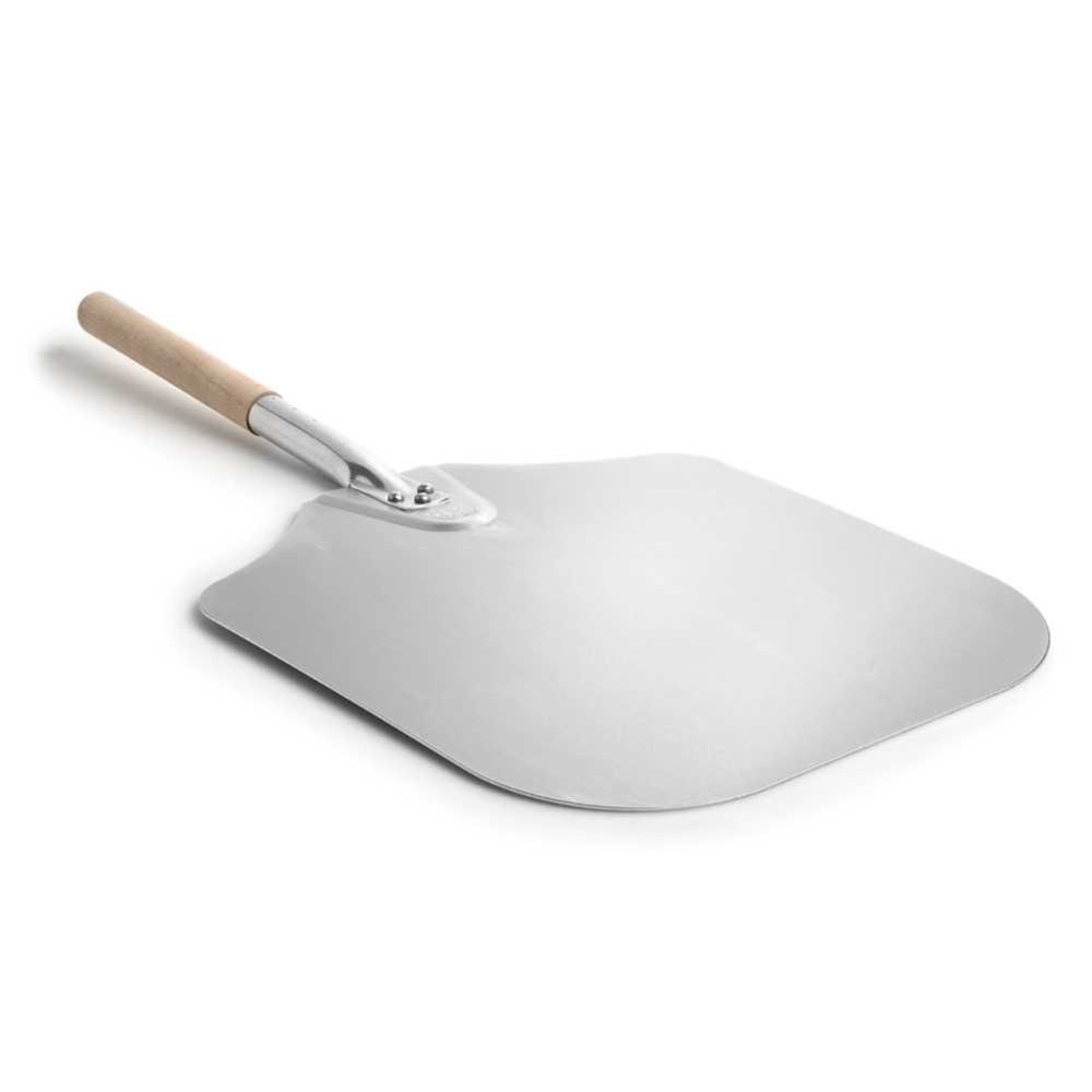 Move your shaped dough to a pizza peel, a thin wooden cutting board, a rimless baking sheet, or an inverted baking sheet. Trim the excess parchment around the dough to prevent it from burning.