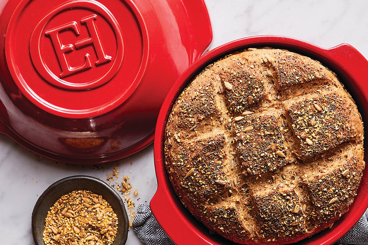 Place the covered crock into a cold oven, set to 450°F, and turn on the oven. Bake the bread for 35 minutes.