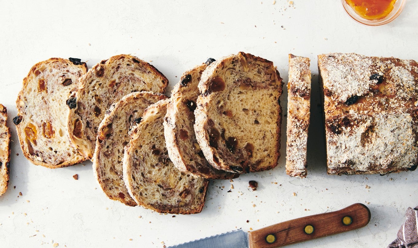Add the walnuts and raisins to the dough and gently knead by hand until fully incorporated. Cover the bowl and allow the dough to rest until puffy, 1 to 2 hours.